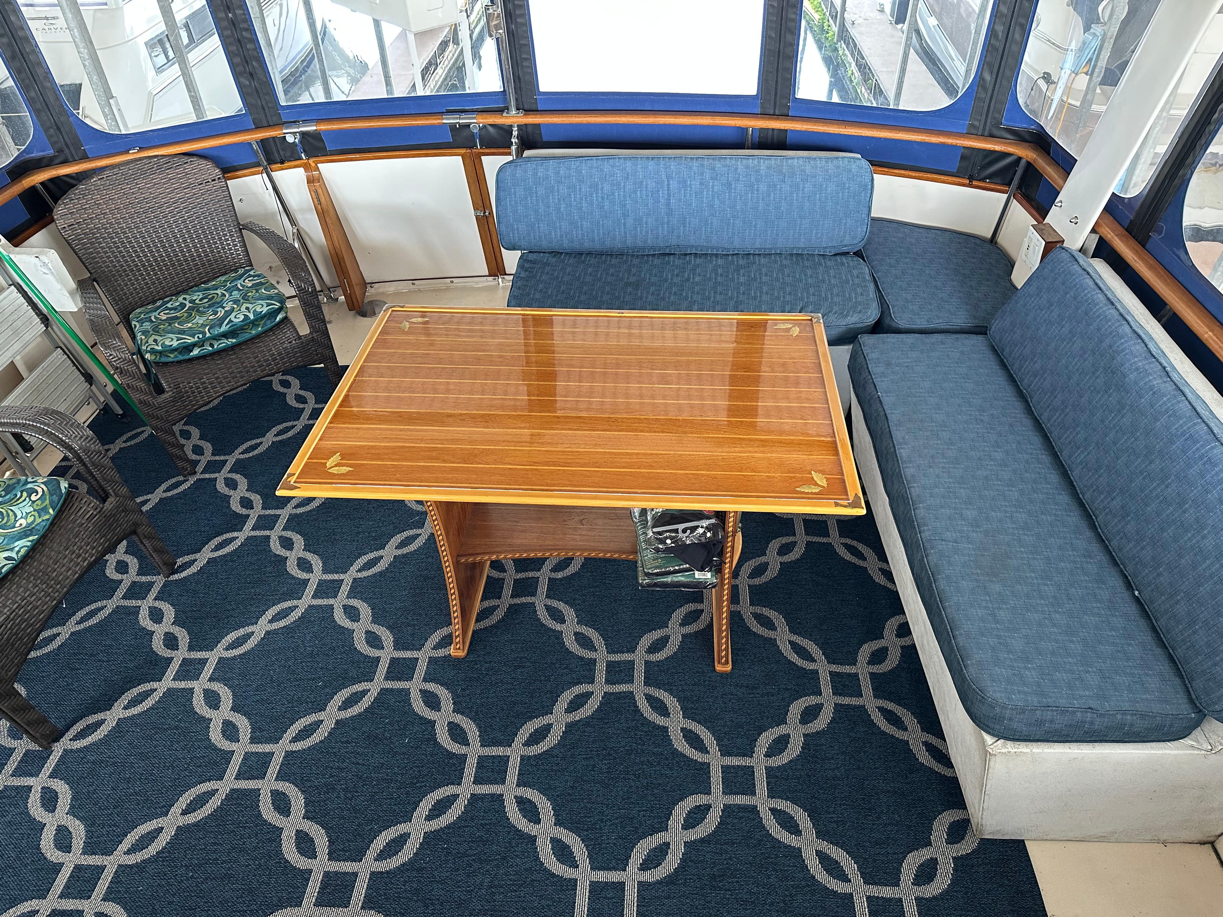 Custom teak table on sundeck