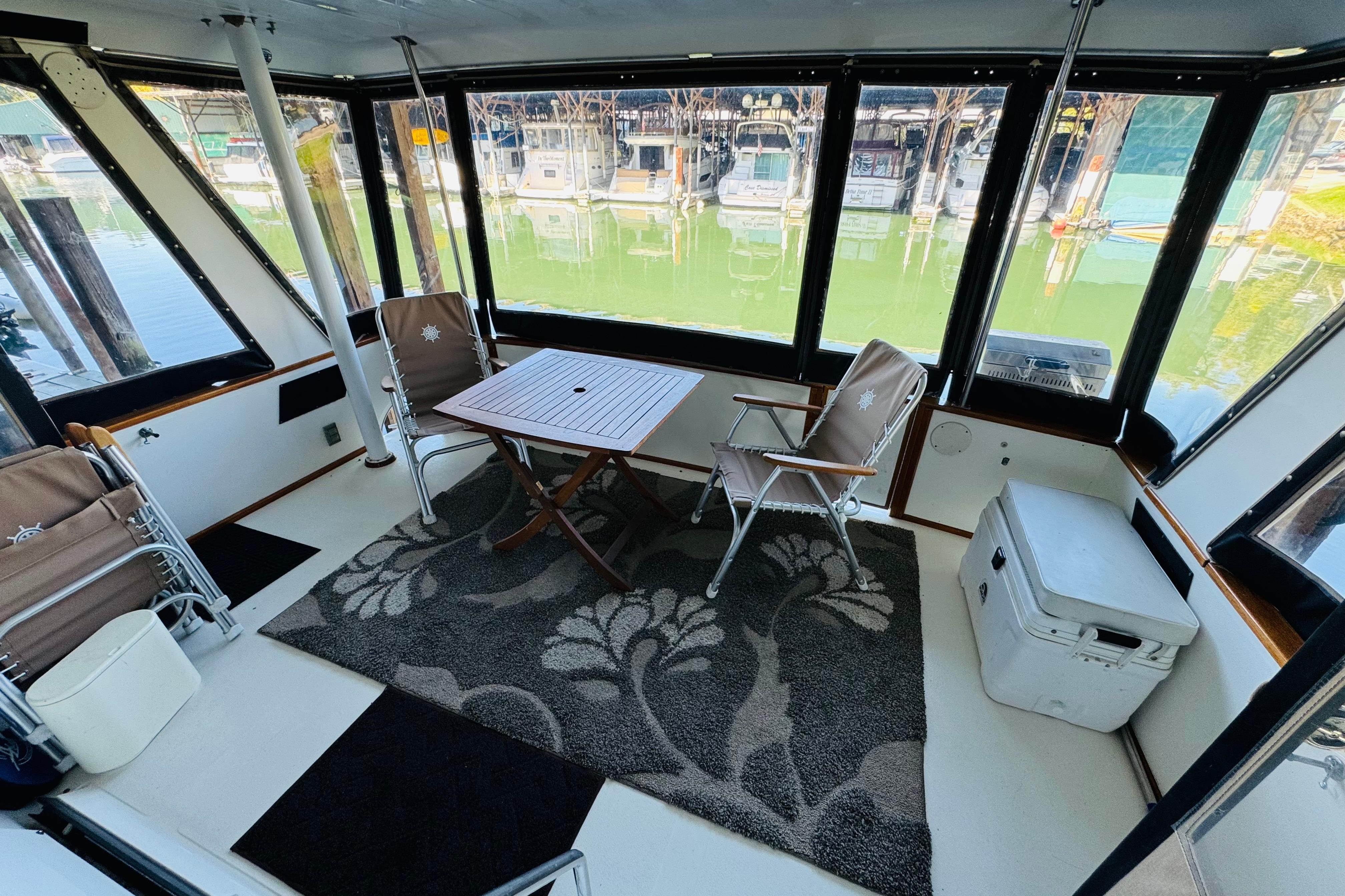 - Full canvas and isinglass enclosure at aft deck and flybridge