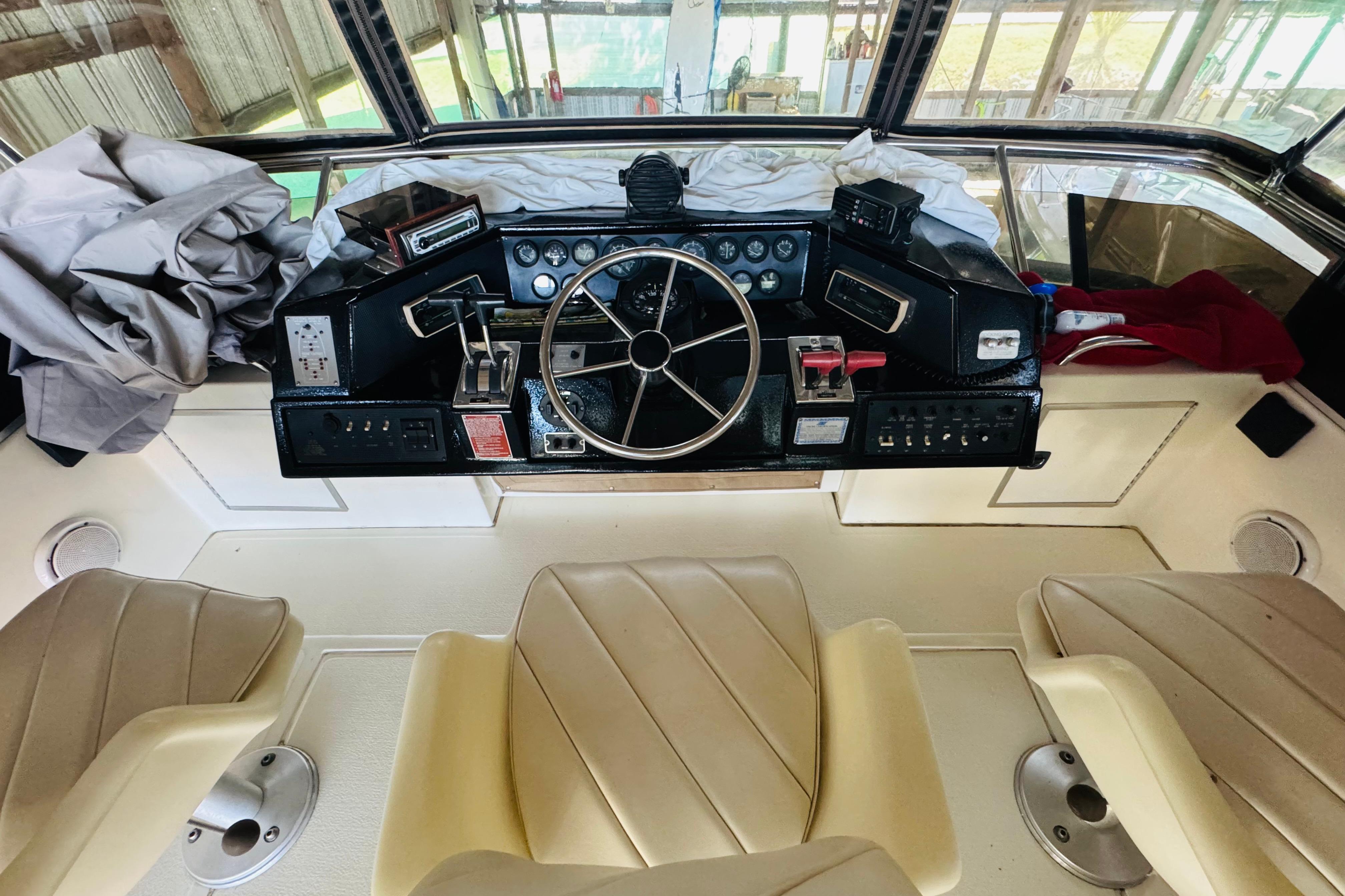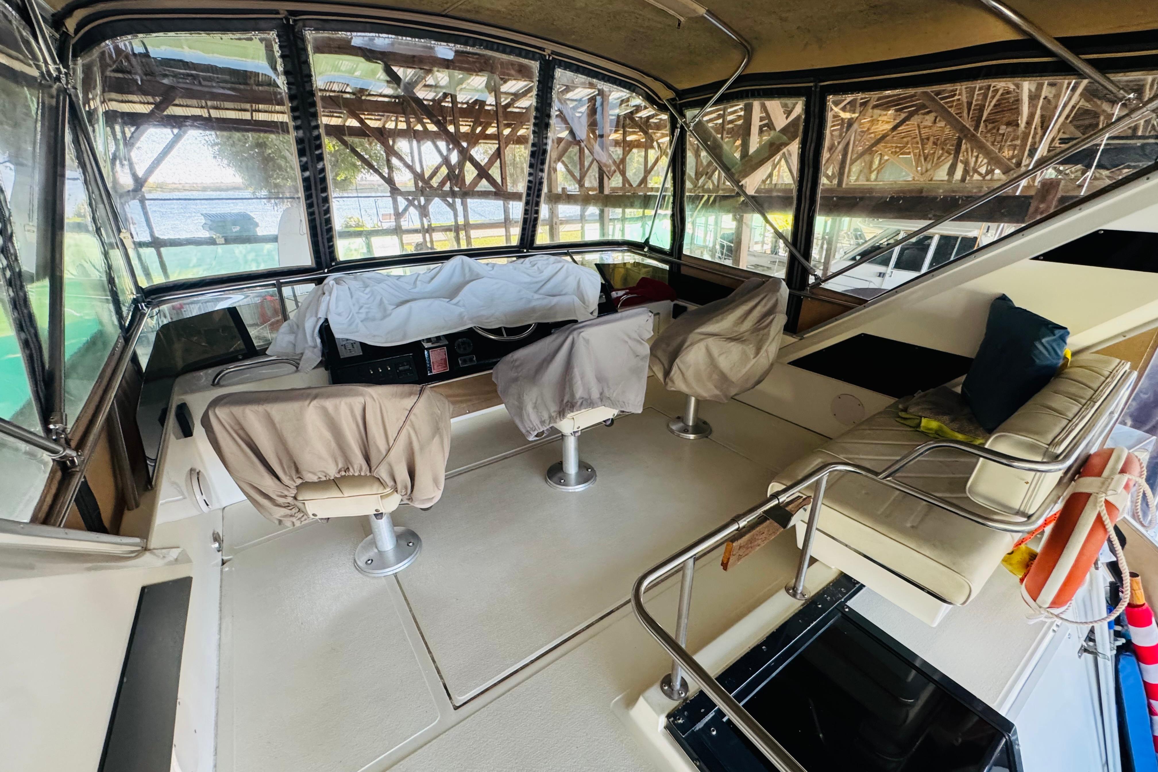 - Three swivel captain’s chairs on flybridge