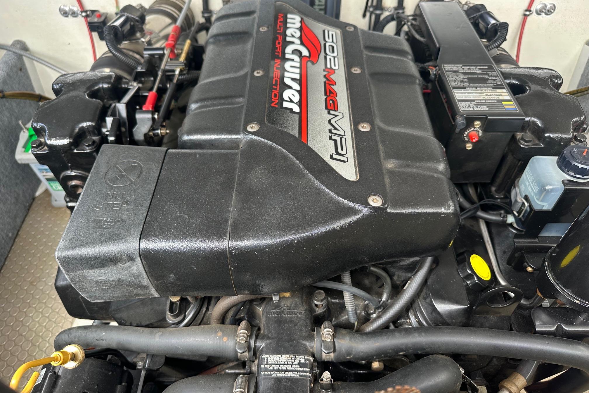 - Mercruiser 502 Mag MPI 415hp fuel injected engine (610hrs) – Top speed of 70mph