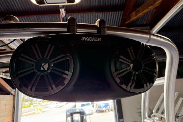 LOUD Kicker Stereo System with tower speakers – crisp sound that carries across the lake