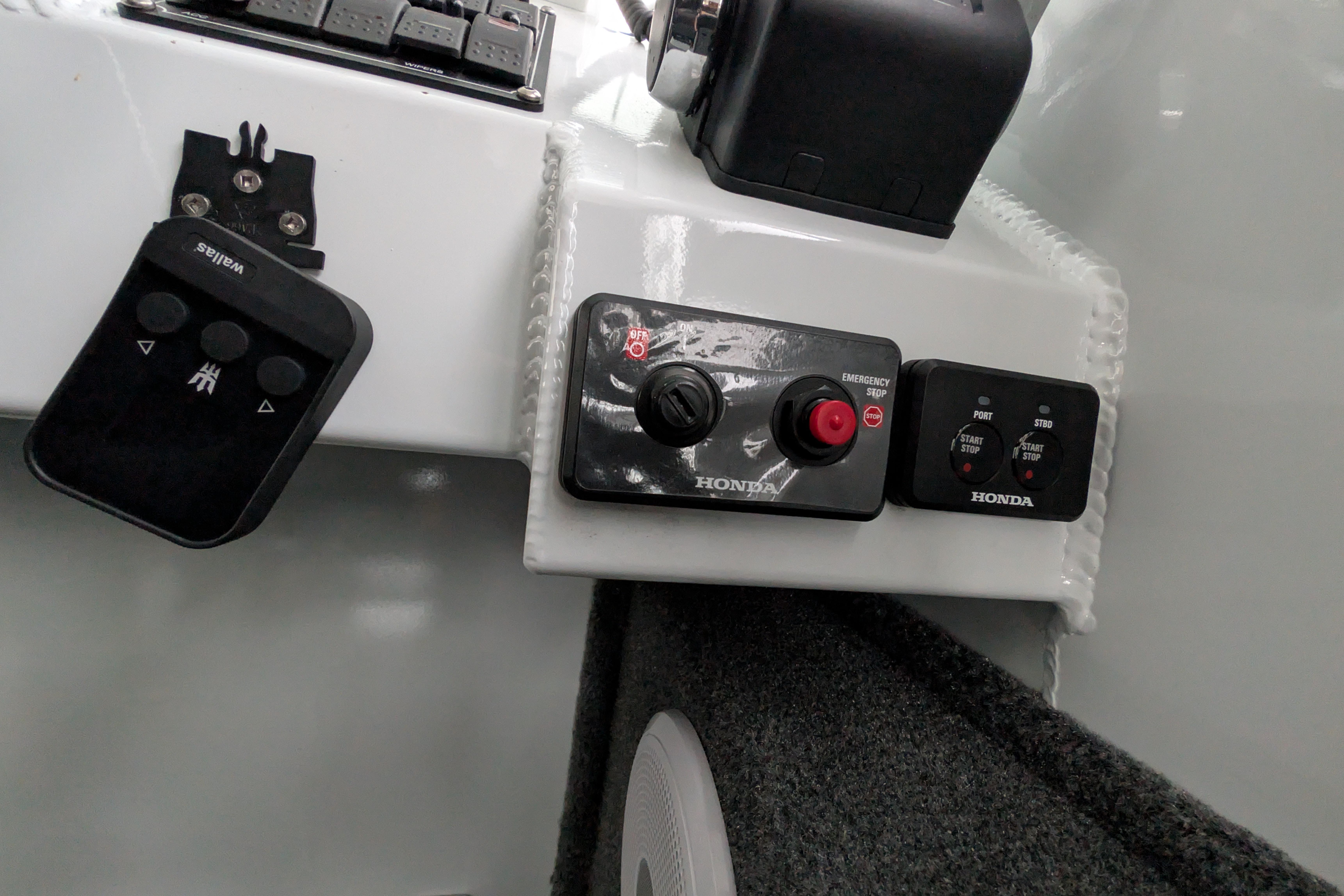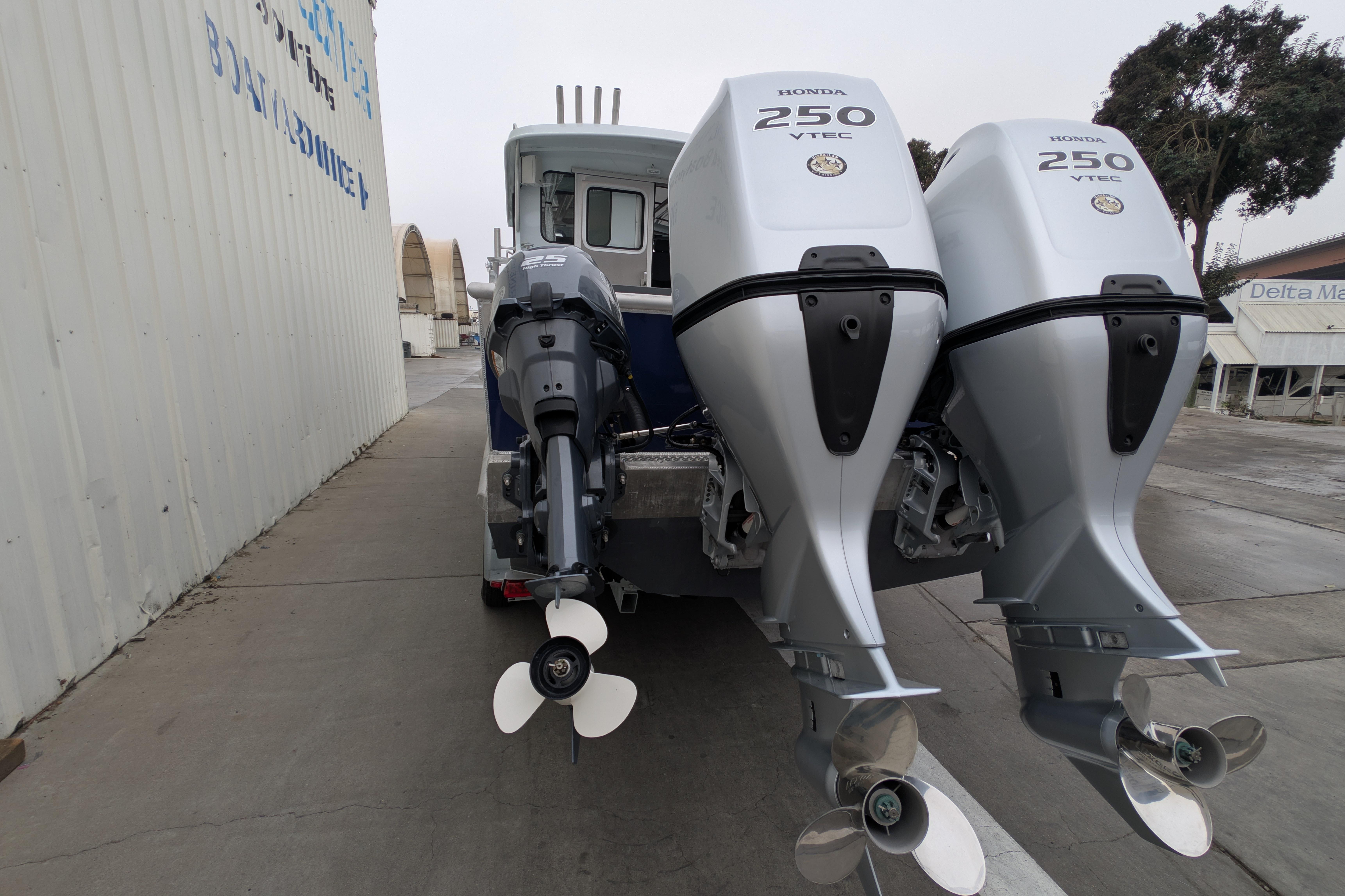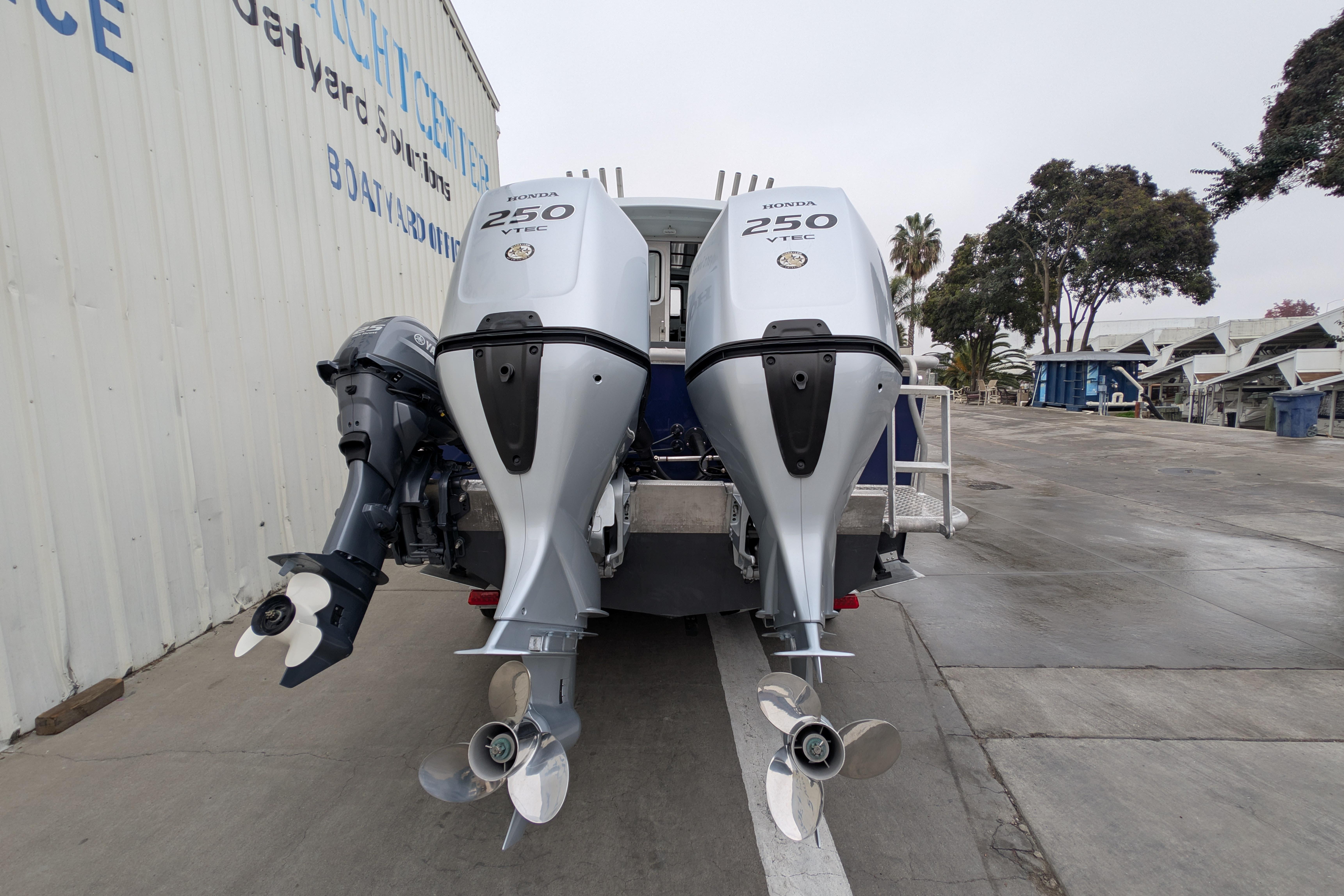 - Twin Honda 250hp outboards with less than 100hrs with Honda Dual Binnacle 1st with HD4 Gauge at helm for full engine monitoring