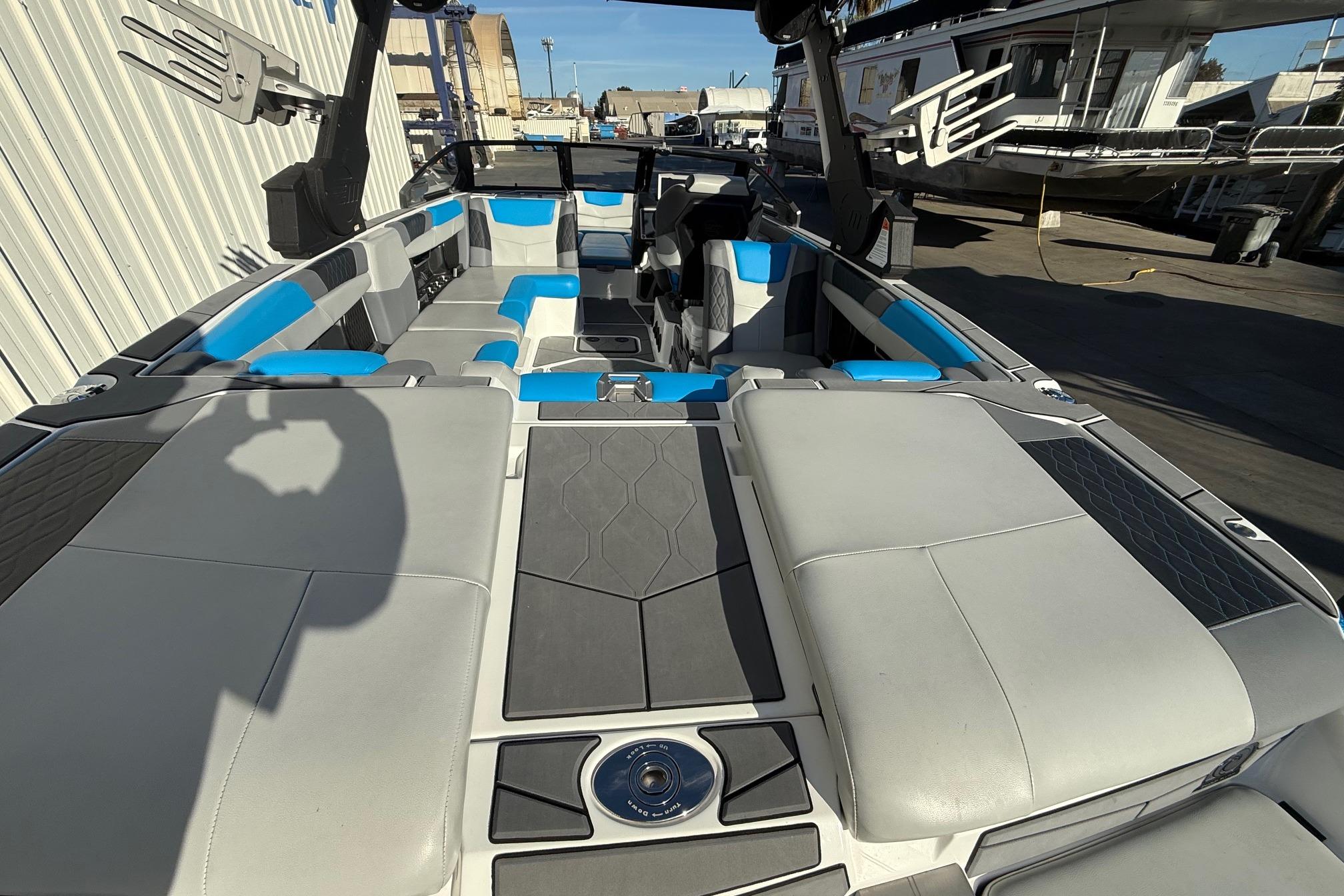 The M240 has solidly planted its flag at the top of the Malibu line. A luxury wake boat like no other, every detail of the M240 has upscale, M-Series style and functionality. The standard features read like a wish list for the perfect towboat: The premium slide-out cooler, powered Gx Tower, Multi View Bench Seat, wireless chargers—we could go on and on. With exclusive features such as ultra-fast-filling Malibu Launch System 6 Ballast™ that fills in under three minutes and Surf Gate® Fusion which is integrated into the M-Line Hull for the greatest and cleanest surf swells in the wake boat industry, the M240 brings you something the water has never seen before. If you are looking for unsurpassed luxury, unyielding performance, and unrivaled innovation, the M240 is for you.